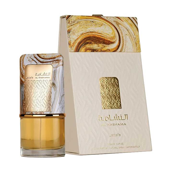 A beautiful example of scent workmanship is Lattafa Al Nashama Long Lasting Unisex Eau De Parfum, which comes in a 100ml bottle. Bergamot, Pepper Pink, and Clary Sage's strong, fiery beginning makes a seductive first impression that is full of mystery and warmth. At its core, plum, jasmine, and black pepper bloom gracefully, lending a hint of romance and floral sophistication. Lastly, the base adds a rich, warm, and enduring depth as it settles into a seductive embrace of Patchouli, Moss, Saffiano Leather, and Amber.